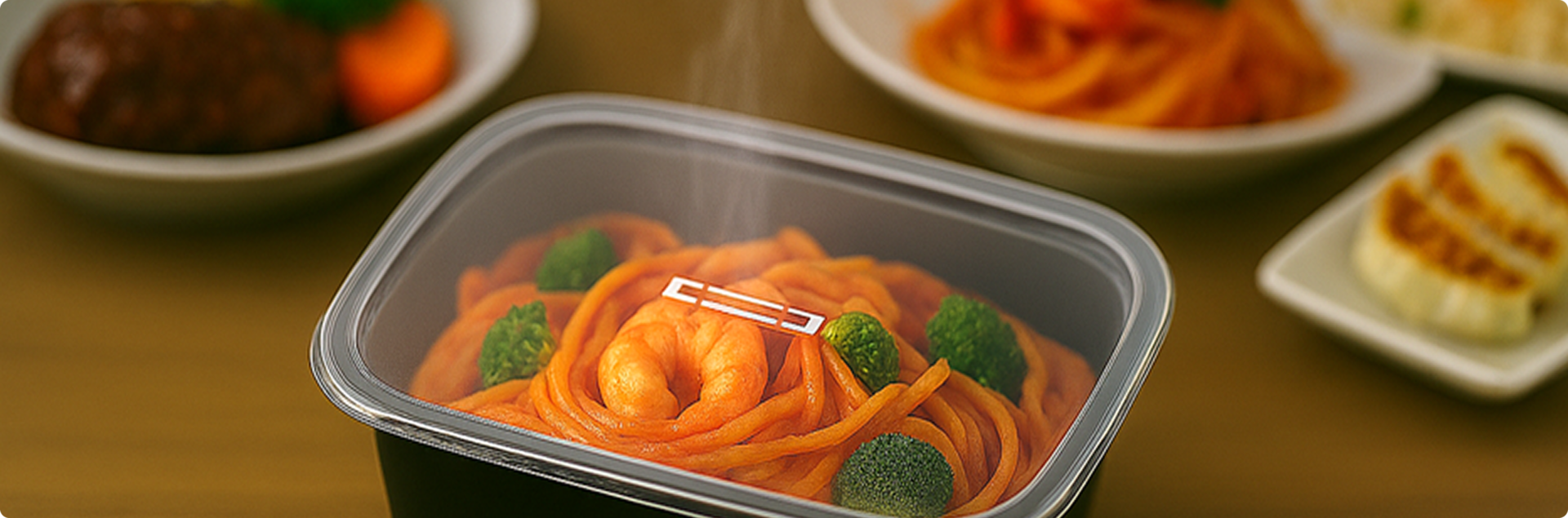 スマレンジを導入することで、開封不要で短時間でムラなく加熱できるため利便性が大きく向上します。さらに、輸送時の密封性を確保し、異物混入を防ぐことで、品質の安全性も担保できます。