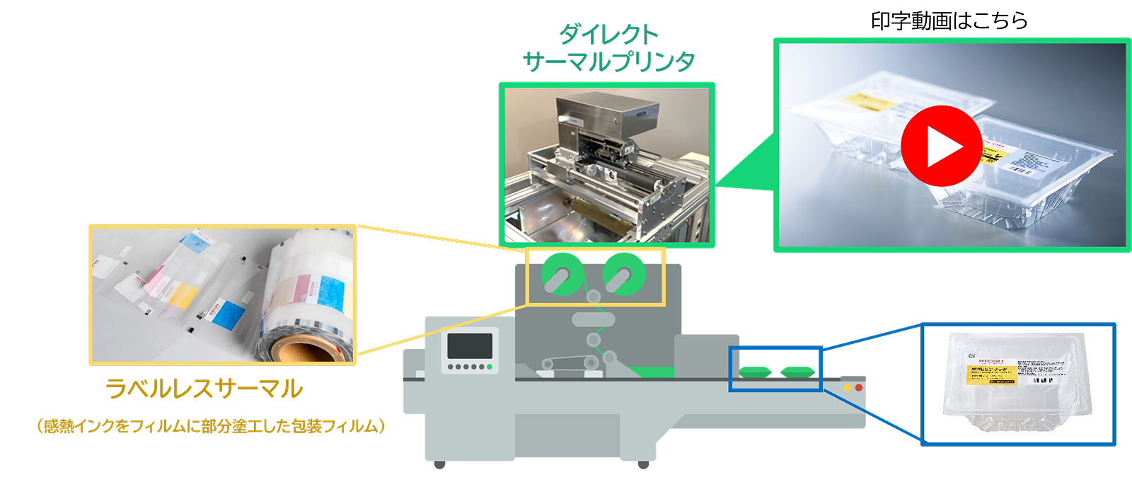 ラベルレス・リボンレスを可能にし、サプライレスによる環境負荷低減・省人化・生産性向上に貢献します。