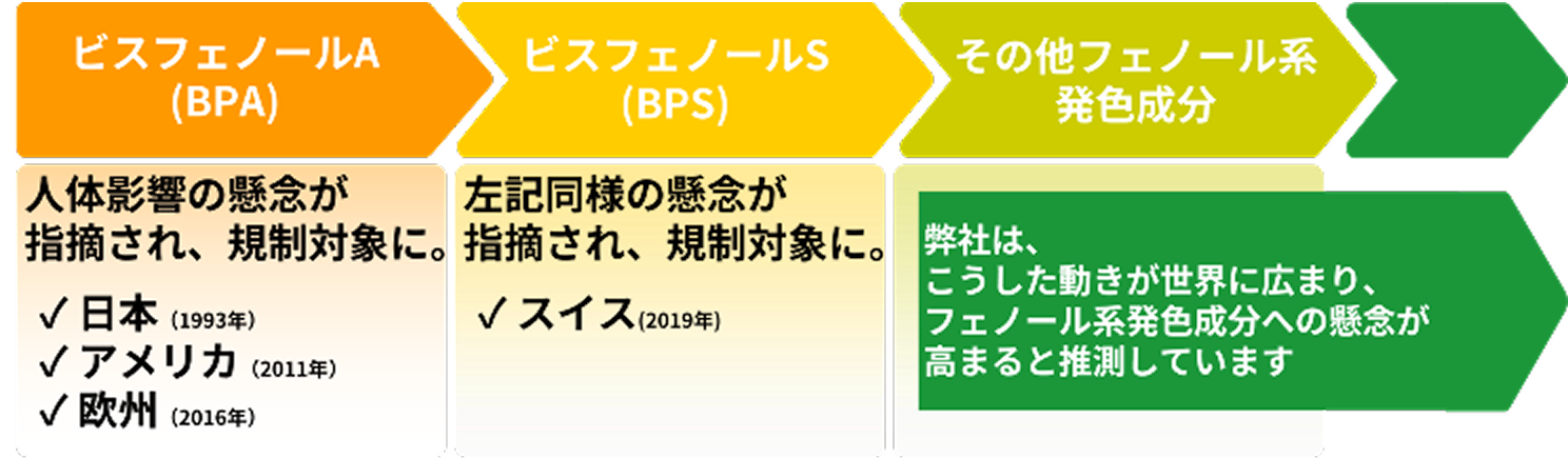 国内で安全性を高めるため、感熱材料のフェノールフリー化を推進しています。